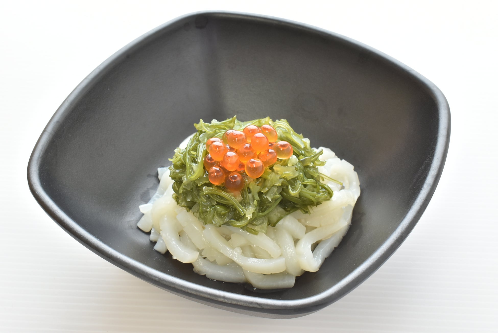 本製品は、うす塩で味付けされているほか、本醸造醤油を使用したかつおタレも付属しているため、そのままでも美味しくお召し上がりいただけます。また、細かくカットされた茎の部分がアクセントとなり、いつものめかぶとはひと味違う食感をお楽しみいただけます。