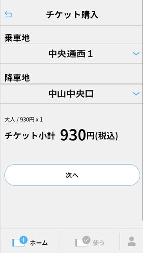 従来の、予約日時に応じたチケット価格設定ができるダイナミックプライシング機能に加え、乗車区間によって運賃が変動する多区間制運賃の予約券に対応します。乗車場所、降車場所、乗車日時などを選択すると、条件に応じた料金が自動で表示されて購入できます。観光地のシャトルバス、フェリーなどのチケットの予約販売に活用できます。