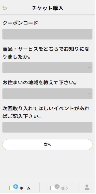 チケット購入時に、購入者の属性などを取得することができます。アンケートの質問内容は事業者で自由に設定できるため、チケット購入者の分析や、拡販に利用することができます。