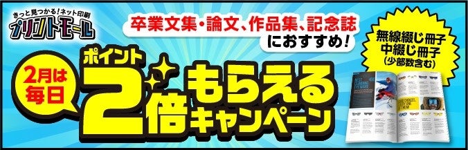 「卒業論文や卒業文集、作品集、記念誌に! 無線綴じ・中綴じ冊子ポイント2倍キャンペーン」を開催します