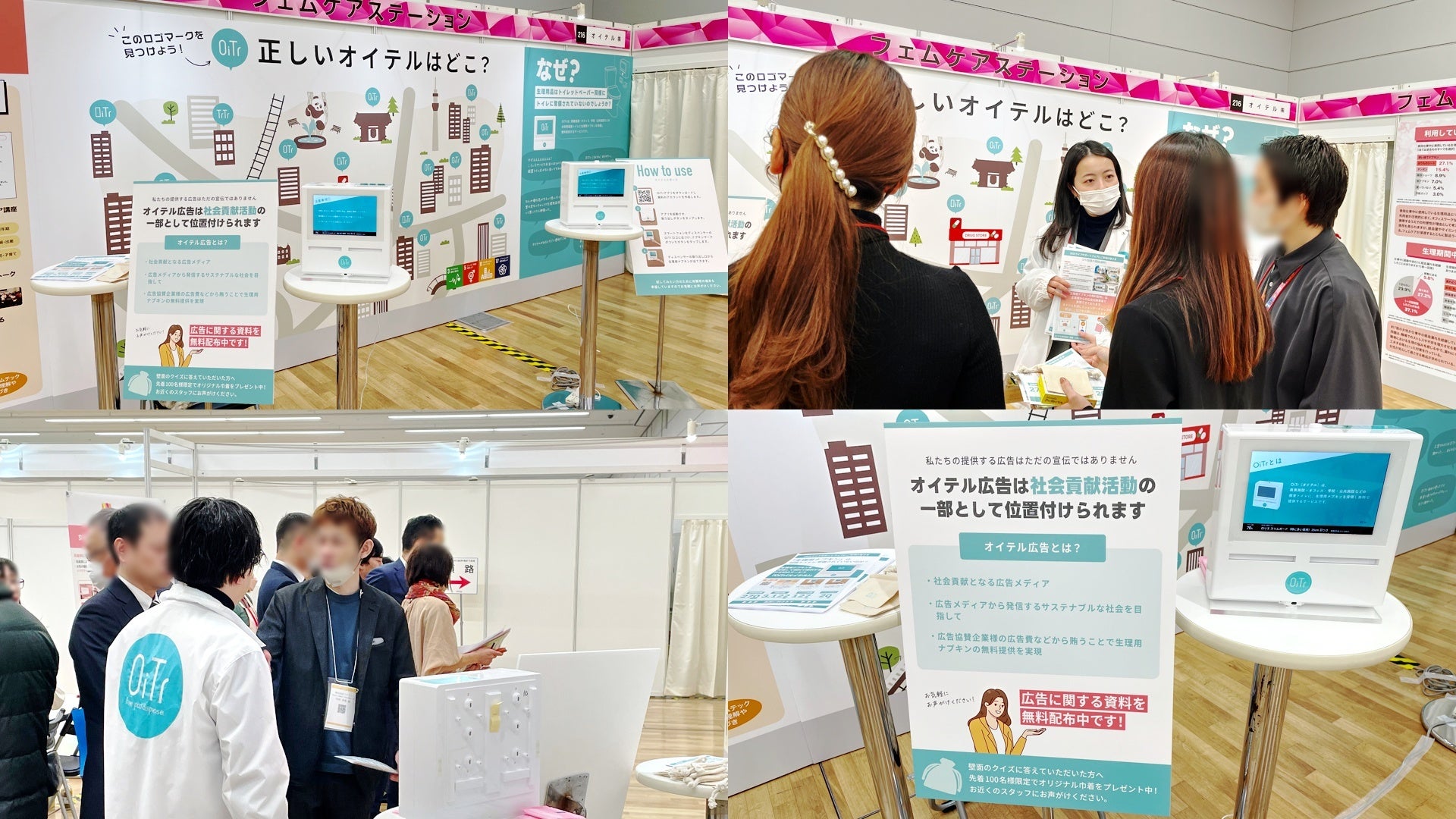 「トイレットペーパーと同じように、個室トイレに生理用品が行き届く社会」の実現を目指し、「フェムケアステーション」エリアにブースを設置して取り組みを紹介しました。