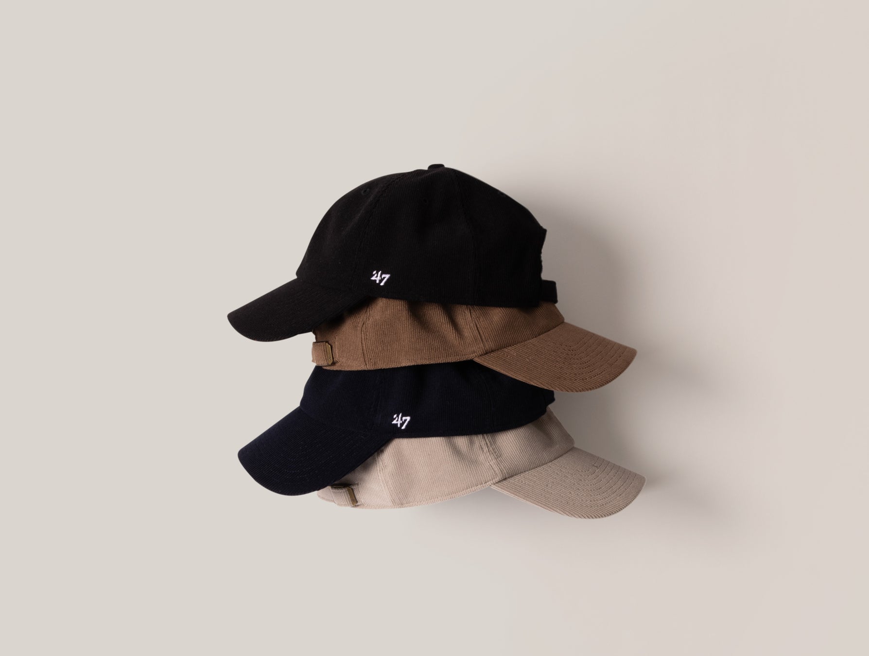 主にコットン100% のカーブドバイザーが特徴の定番ベースボールキャップ、「’47 CLEAN UP」が