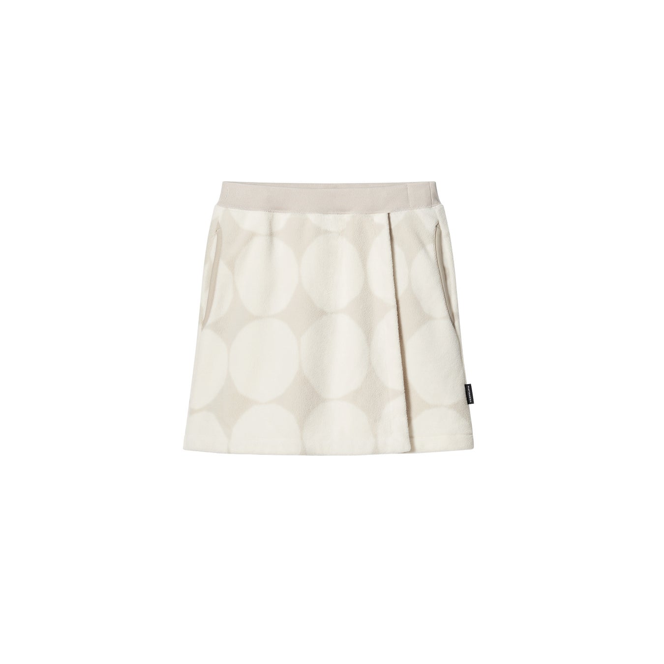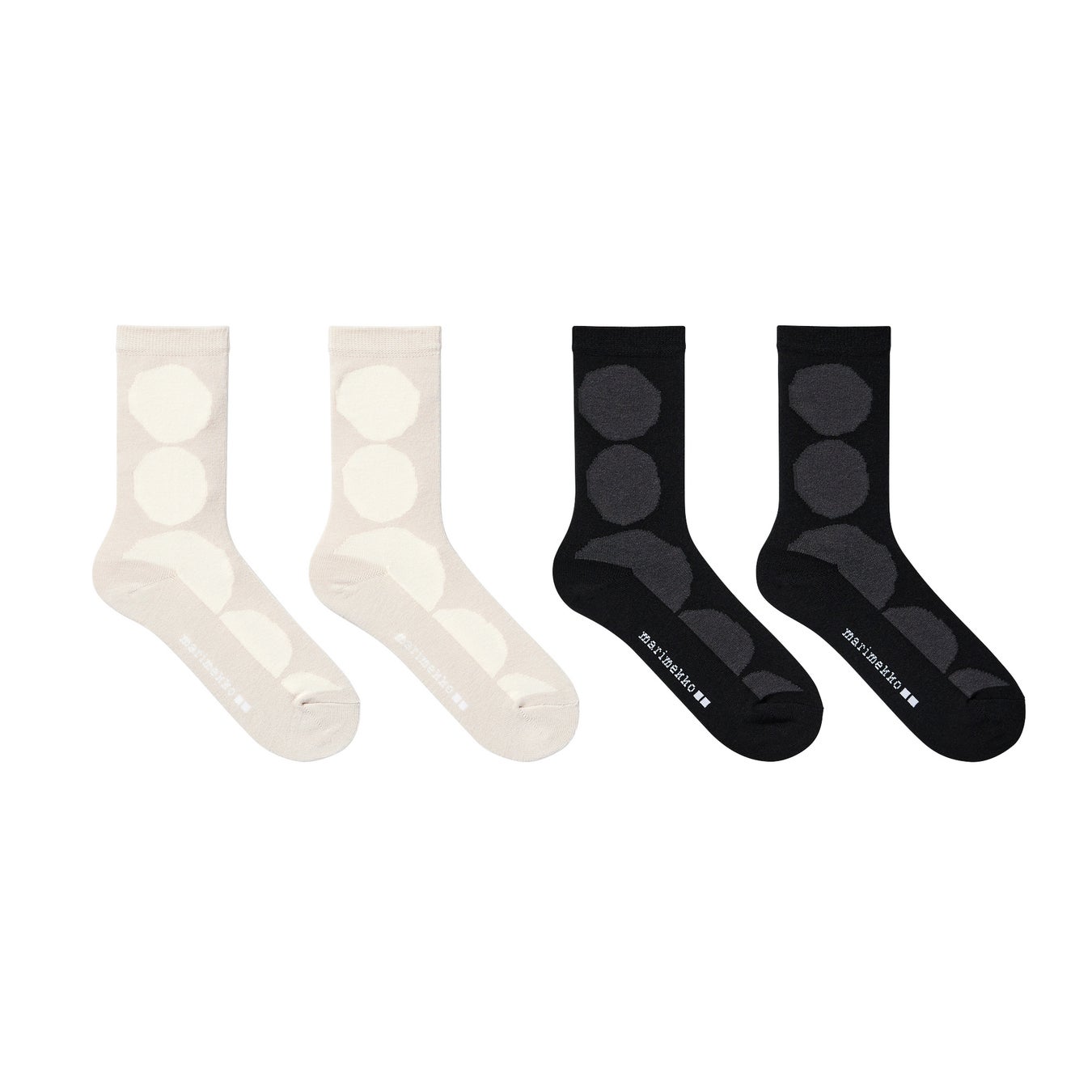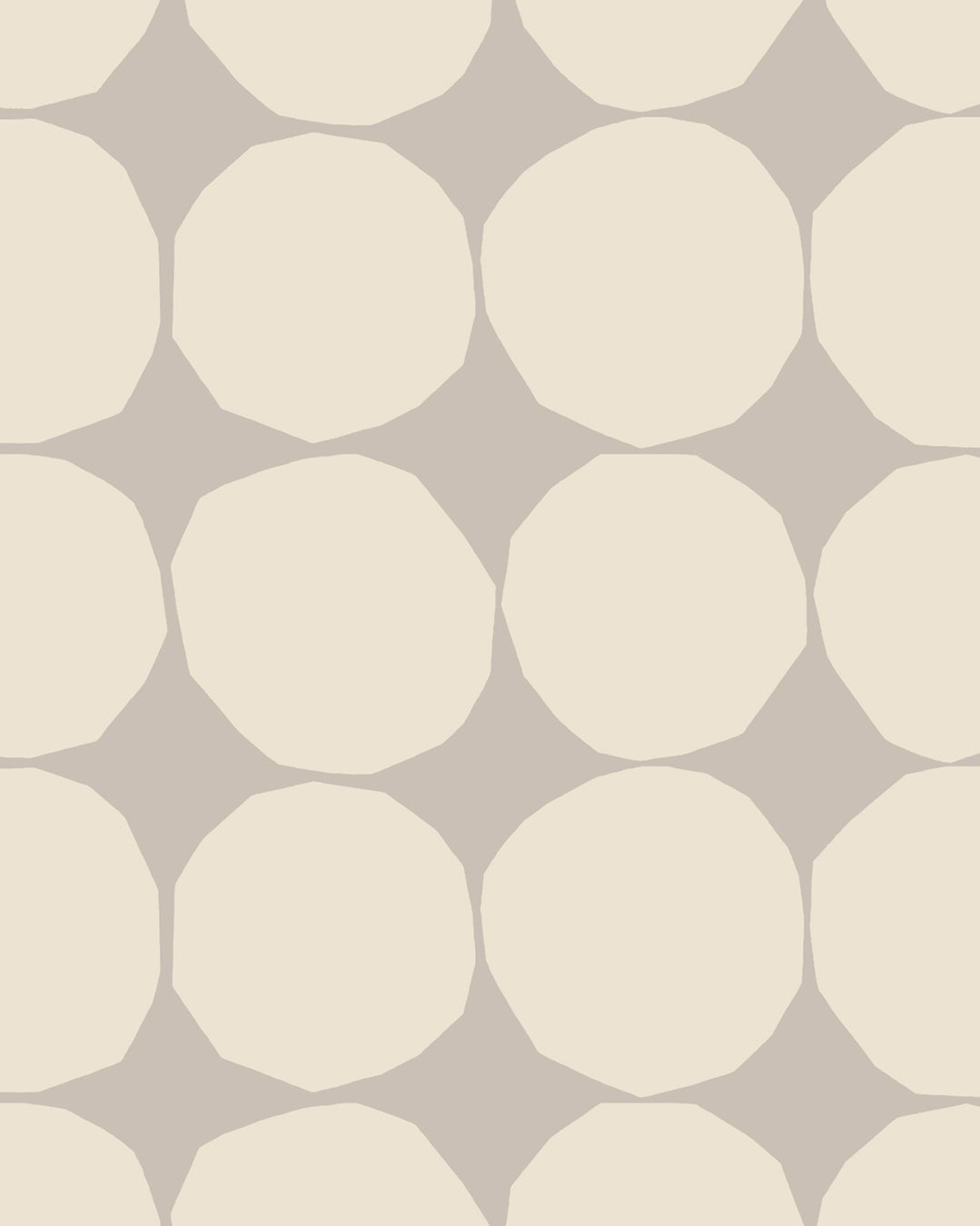 マイヤ・イソラのデザインによる「キヴェット」(石)は、ハサミを使って切り取った円形をモチーフとしたパターンです。マイヤのアトリエの周りにあった大きな角ばった石ころに色をつけたものが、インスピレーションのもとになっていると考えられています。発表以来、マリメッコを代表する人気パターンのひとつです。