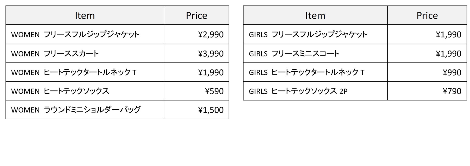 冬のユニクロならではの機能性アイテム、フリースとヒートテックがメインのコレクションです。リラックスシルエットのフリースフルジップジャケットとスカートは、大人と子供がペアで楽しめるデザインにしました。また、内側に起毛加工を施した柔らかな肌触りのヒートテックタートルネックTは、インナーとしてもレイヤリングピースとしても活躍します。スタイリングのアクセントにヒートテックソックスとラウンドミニショルダーバッグを加えれば冬のお洒落がいっそう楽しくなることでしょう。