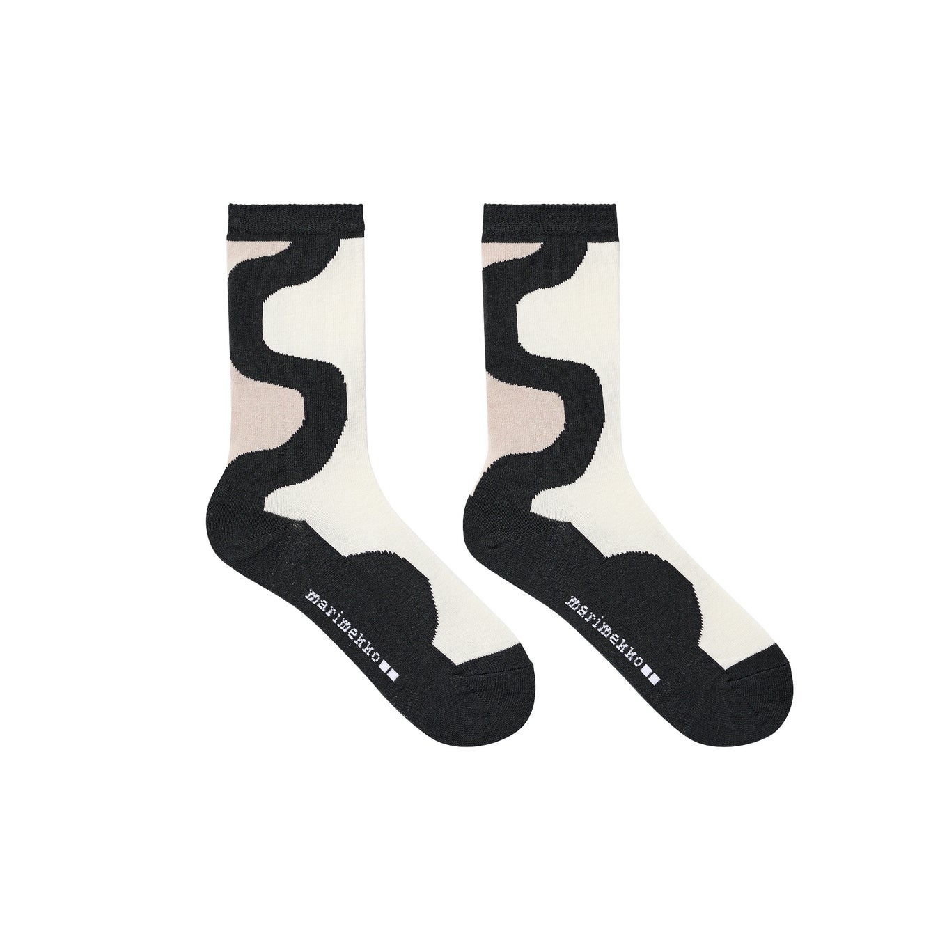 1960年代初頭、ギリシャを旅していたマイヤ・イソラは、波の動きにインスピレーションを受け、ファブリックのためのパターンをいくつか描きました。そのひとつが、1964年作の「セイレーニ」(セイレーン)です。神話に登場する海の怪物、セイレーンにちなんで名付けられたこのパターンは、船乗りたちを危険な波間に誘い込んだセイレーンの魅惑的な歌声も思い起こさせます。