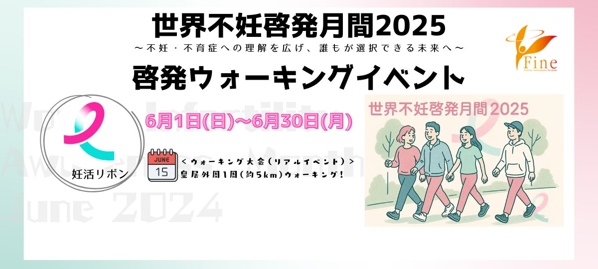 不妊治療患者をはじめ不妊・不育症で悩む人をサポートするセルフサポートグループ「NPO法人Fine(ファイン、以下「当法人」)」は、世界不妊啓発月間となる6月に、誰もが自分らしく選べる社会に向けて、啓発イベント『世界不妊啓発月間2025 ~不妊・不育症への理解を広げ、誰もが選択できる未来へ〜』を専用アプリによるオンラインと対面でのリアルイベントにて実施いたします。