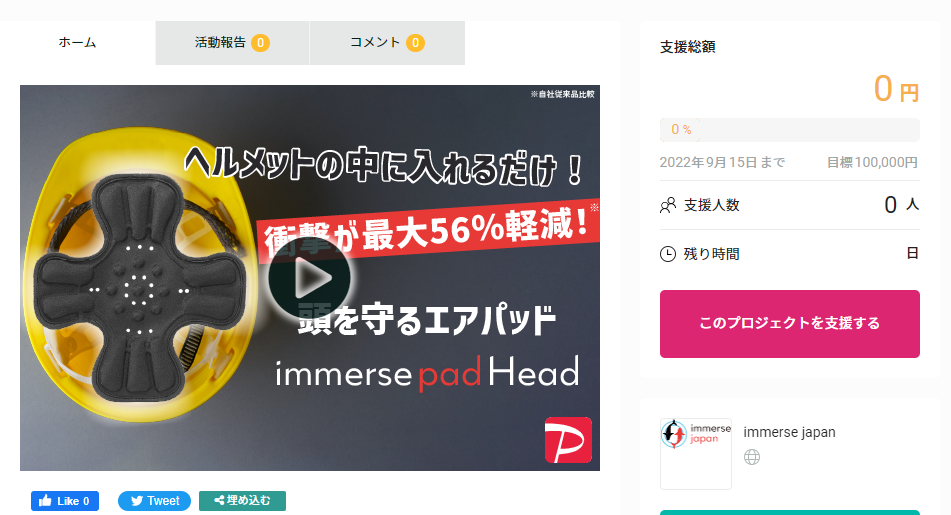 【防災・災害対策に最適】あなたの頭を守るヘルメット専⽤エアパッドimmerse pad head (イマースパッドヘッド)グリーンファンディングで限定発売開始!