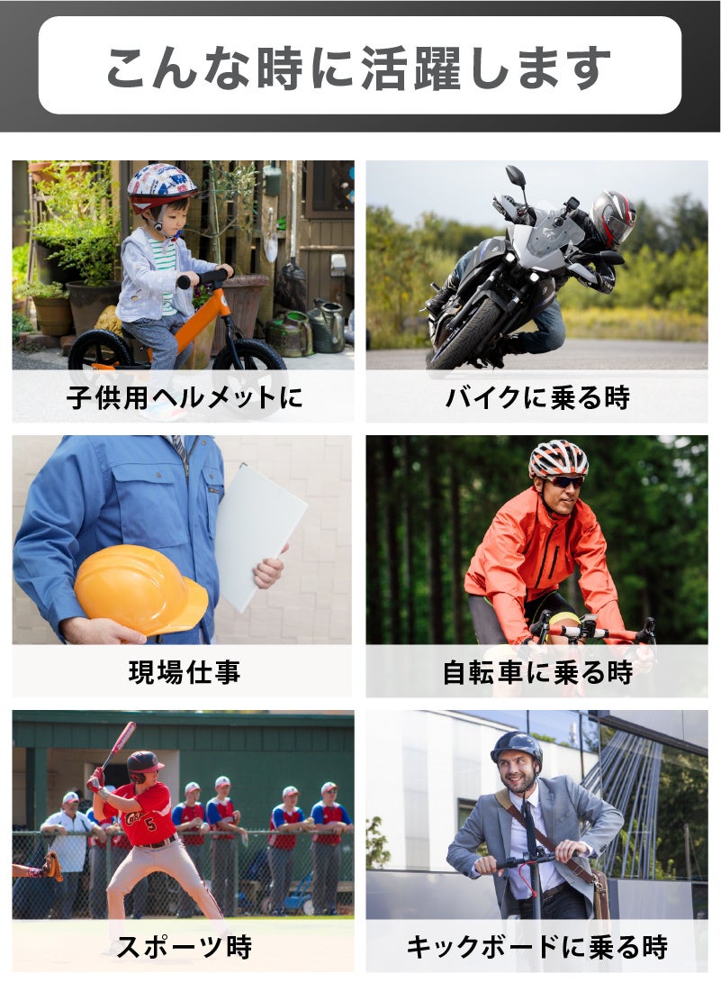 - ほとんどのヘルメットに使える