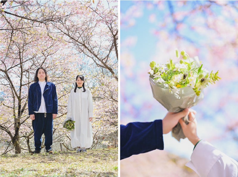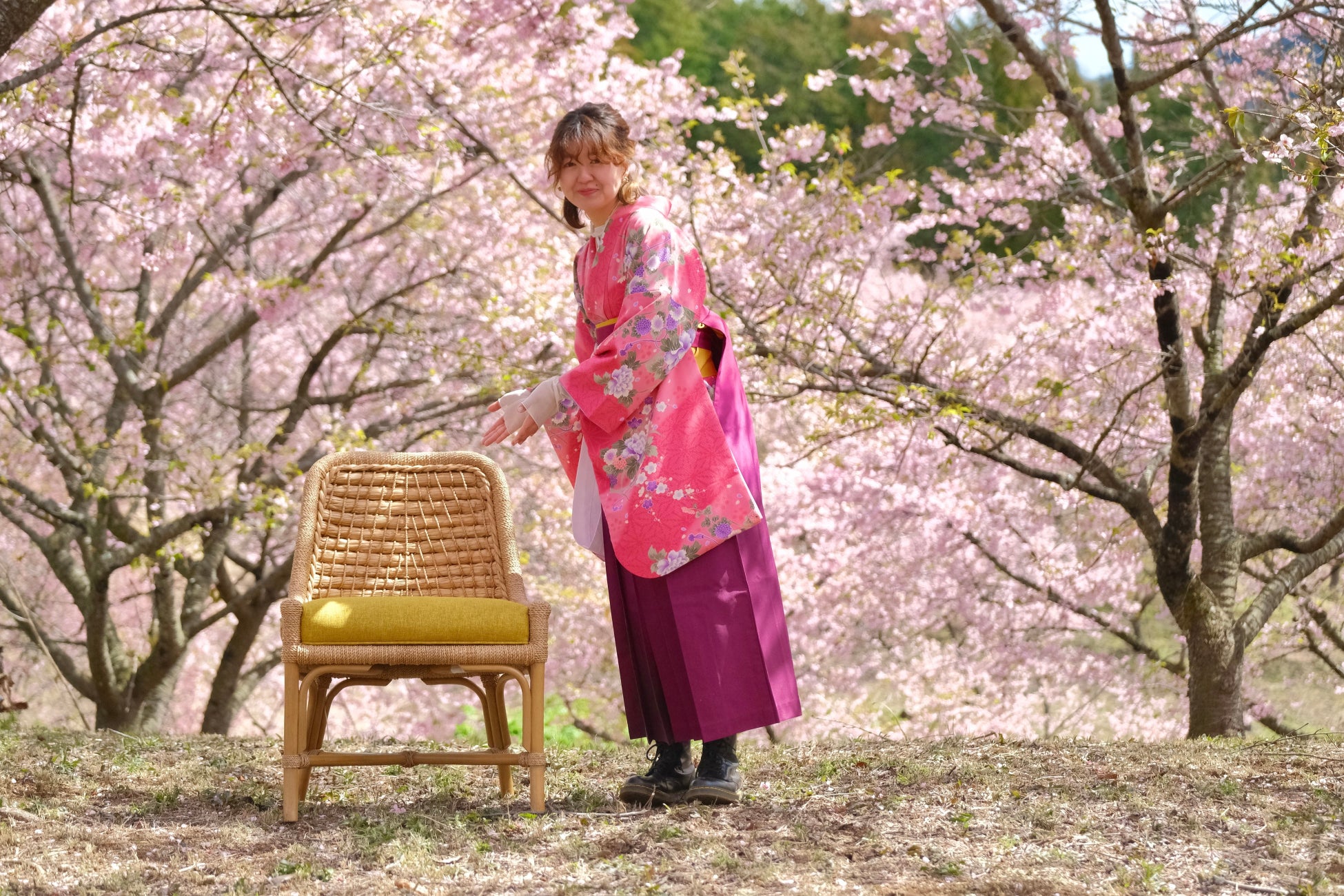 河津桜を背景に、和装フォトや思い出の一枚を撮影してみませんか。