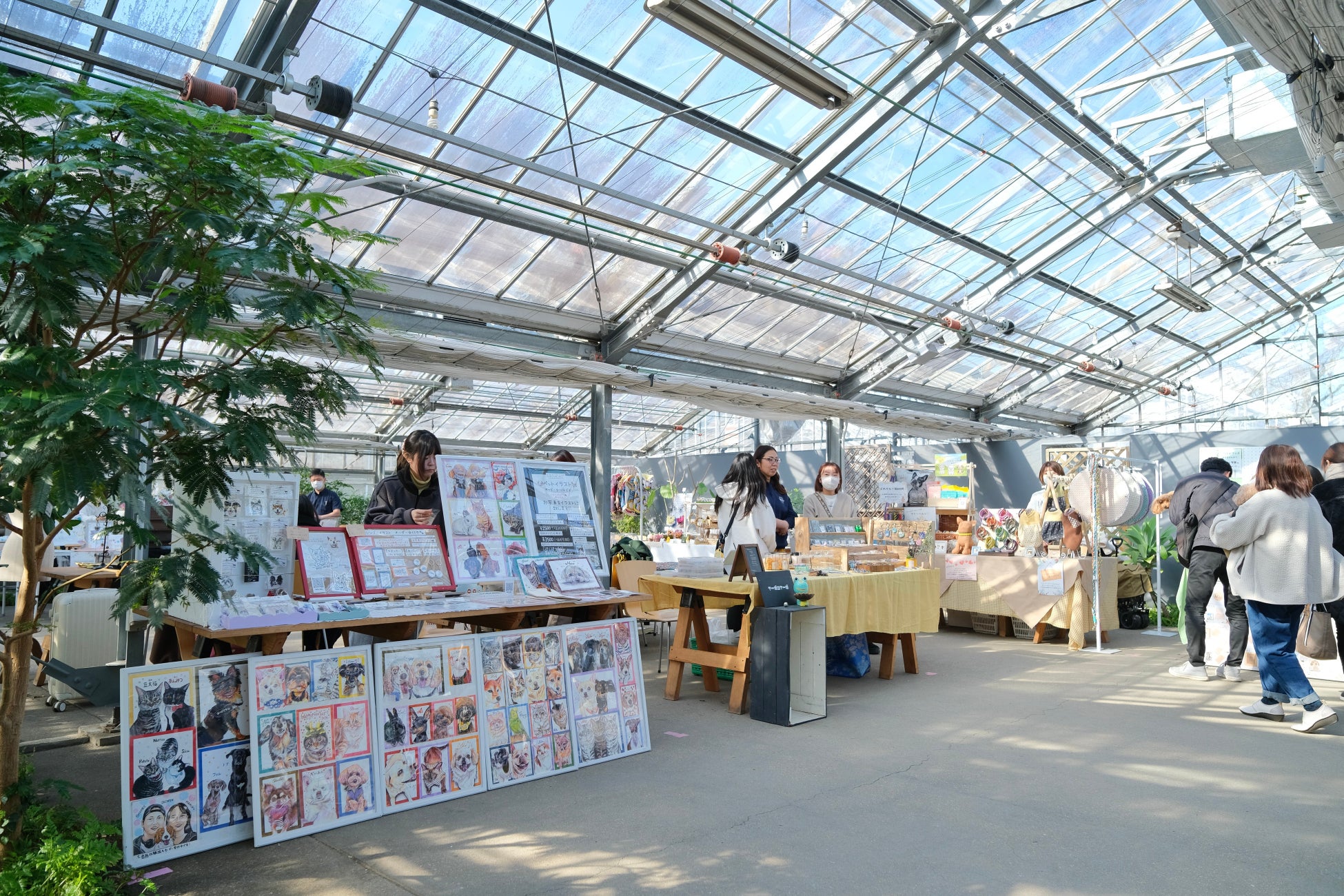 ポカポカと陽だまりのような癒される温室は、苺をイメージした装飾が可愛いフォトスポット満載の空間で、3日間地元のマルシェが日替わりで出店します。
