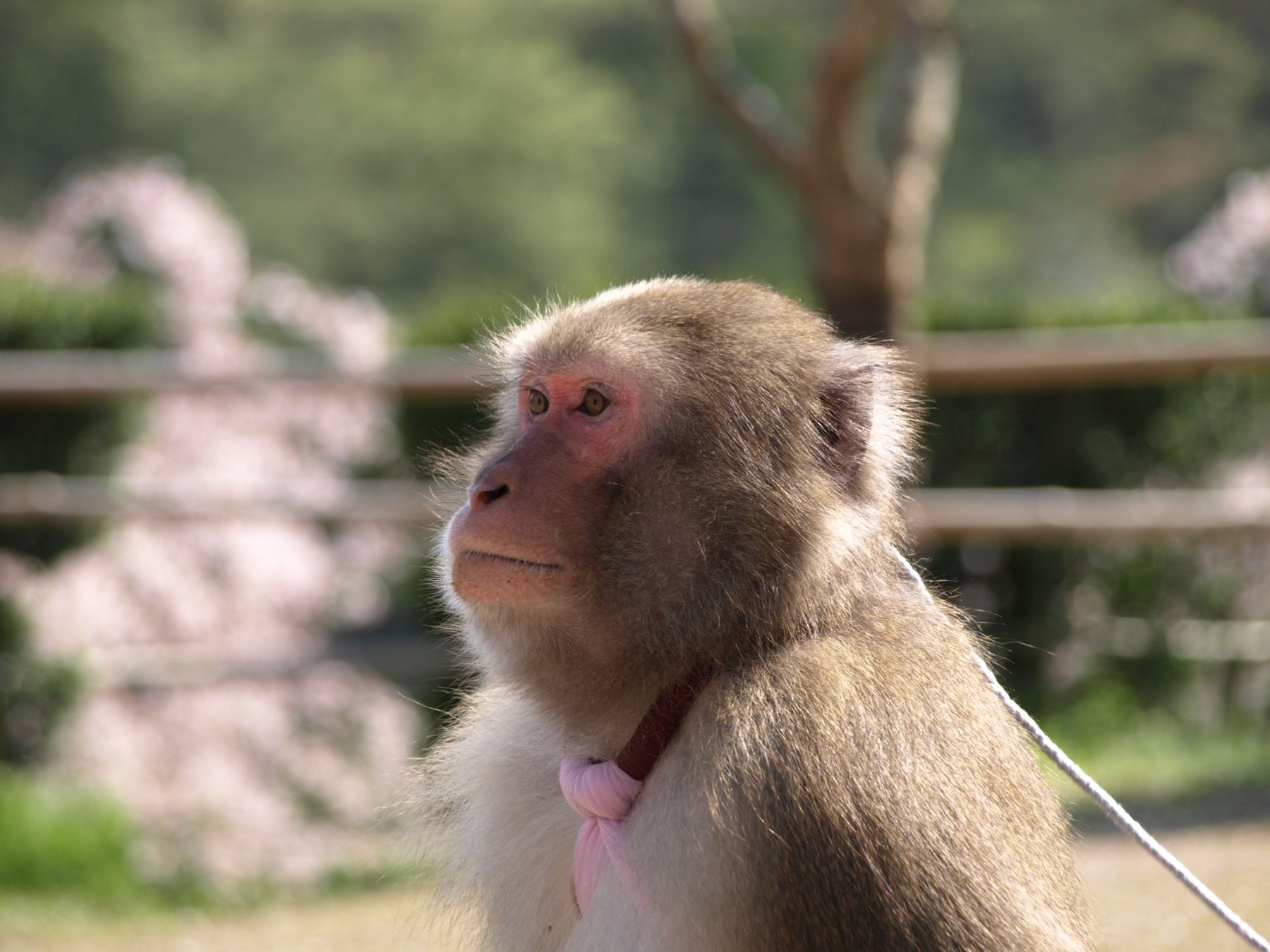 河津桜を眺める、グランピングエリアにお猿さんが登場!息の合った妙技やユーモアあふれる日本伝統芸能の猿回しをご自由に鑑賞ください。