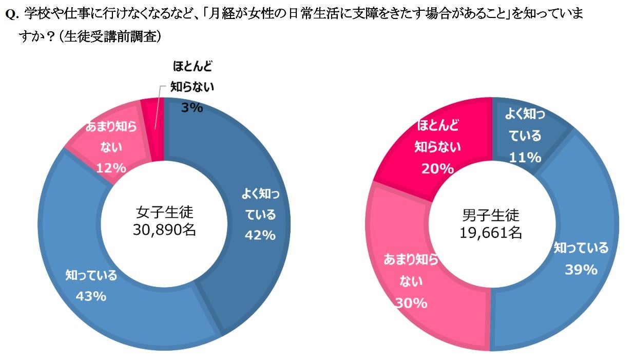 - 半数の男子生徒は「月経が日常生活に支障をきたす場合があることを知らない」と回答