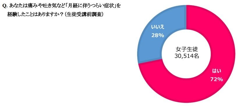 - 約7割の女子生徒は、「月経に伴うつらい症状がある」と回答