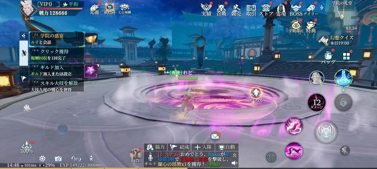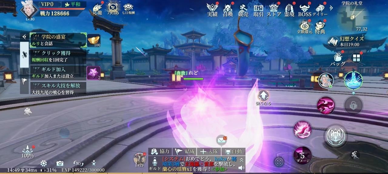 本作は、仲間との協力プレイや冒険が楽しめる正統派マルチオンラインRPGです。その一番の魅力は仲間と繋がるさまざまな形式のバトル!乱戦形式のボス戦、ギルド戦で、強力な必殺技・スキルを駆使して戦いましょう。またパーティに入れられる「戦霊」は龍・麒麟・玄武・始祖鳥・九尾の狐などの伝説の生き物たち。仲間プレイヤーと強力なボスを撃退した後は、そのドロップ素材で戦霊を強化して華やかな姿に覚醒させ、バトルで大暴れさせましょう!