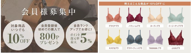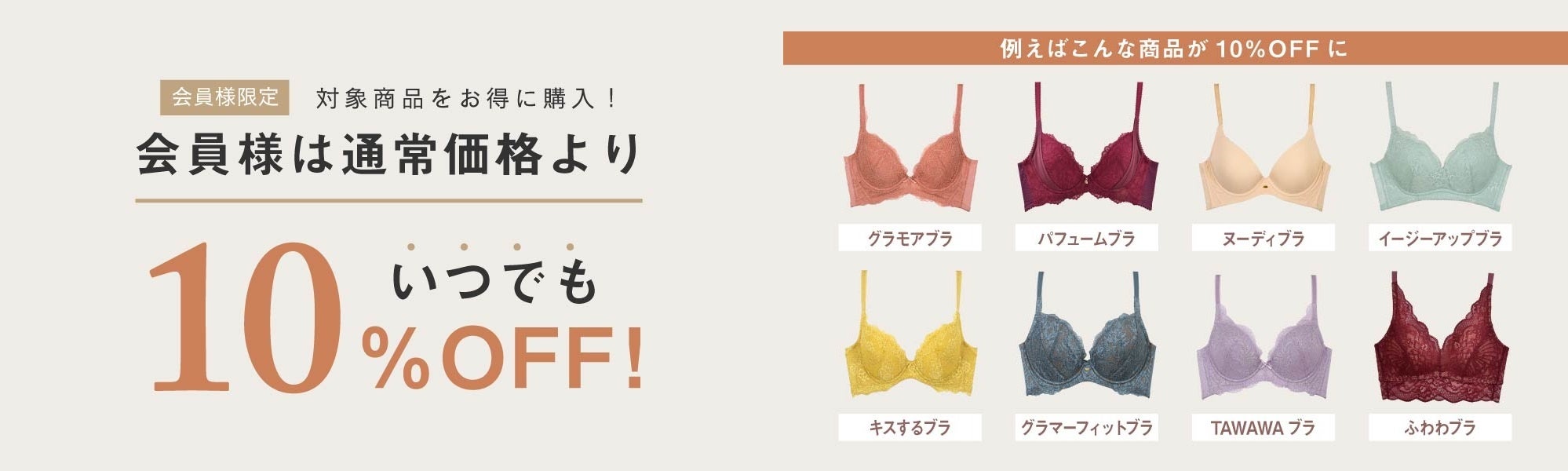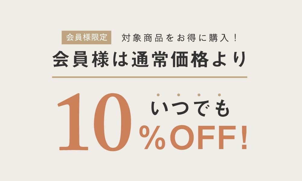 glamore会員になると、対象商品はいつでも10%OFFで購入可能です。また、会員ランクに応じてポイントを還元。最大5%のポイントが還元されるので、よりお得にお買い物を楽しめます。