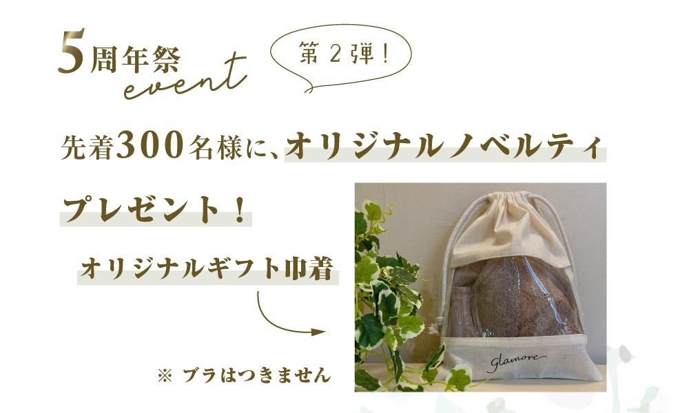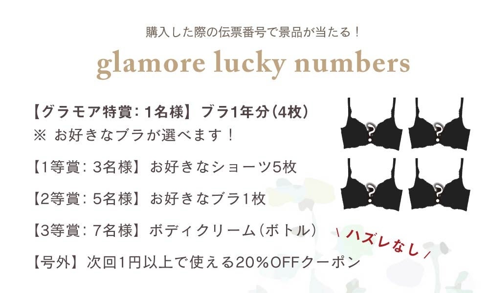 「グラモアラッキーナンバーズ」特賞はお好きなブラ1年分(4枚)!glamore 公式サイト5周年記念祭第2弾も同時開催!