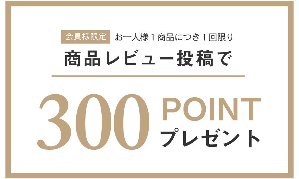 商品レビューを投稿すると、いつでも300ポイントをもらえます。もらったポイントは次回以降の買い物に役立てられます。