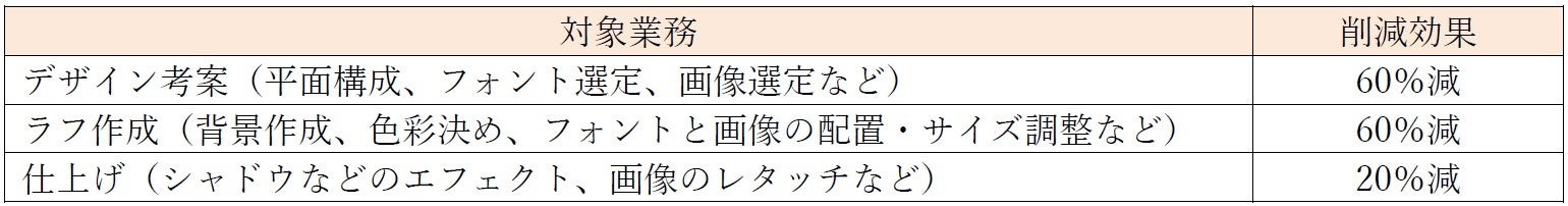 クリエイティブ制作においてさまざまな制約条件を考慮した判断が必要なポイントを削減することでデザイン考案時間を大幅に短縮します。これにより、ブランド管理に詳しくない担当者でも原則に沿ったクリエイティブを制作することが可能となり、業務工数の削減と成果物の品質管理を両立できることを確認しました。