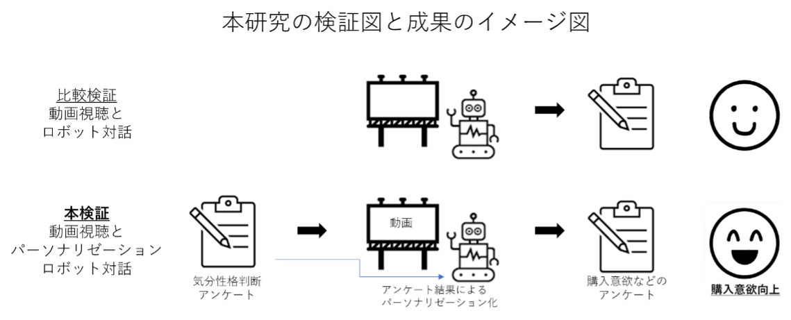 合わせたロボットとの対話を介在させることで動画の説得力が高まり、商品の購入促進が期待できる