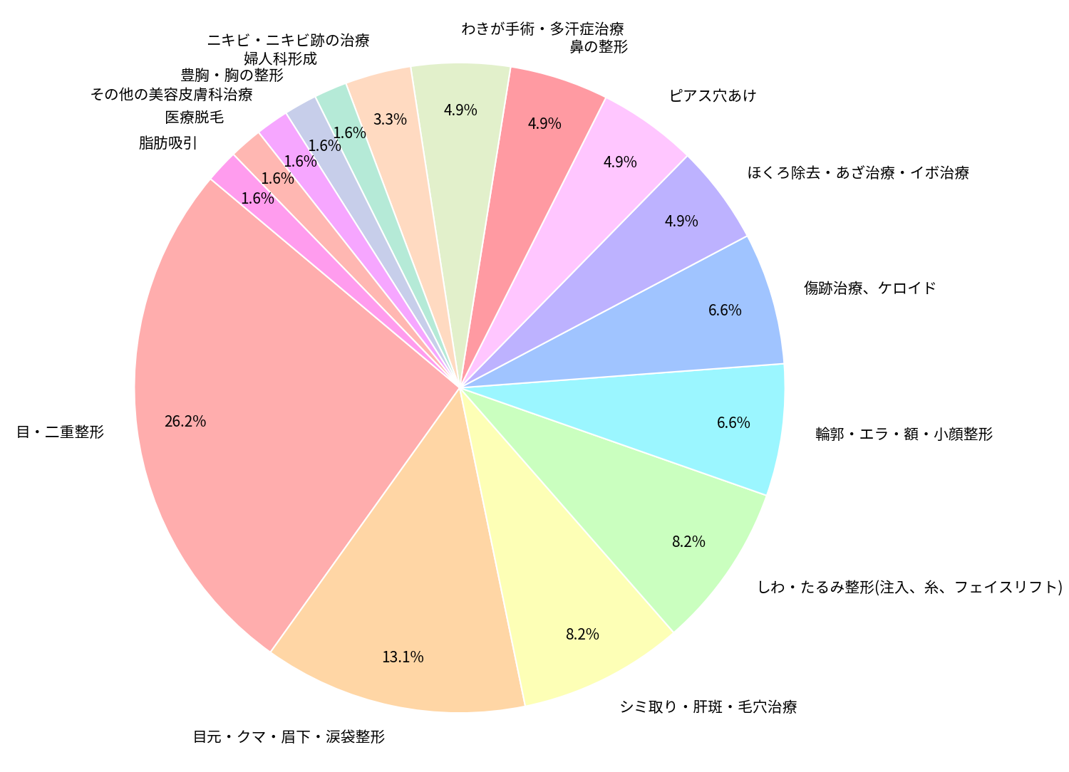 2位:目元・クマ・眉下・涙袋整形:13.1%