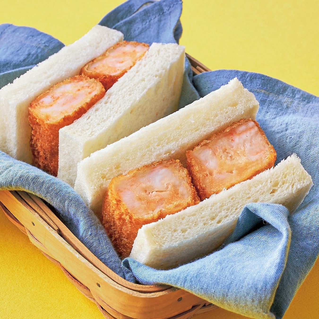 サクッと衣にぎゅっと詰まった、海老の身と帆立の旨みをこだわりの一等小麦粉食パンでサンド!