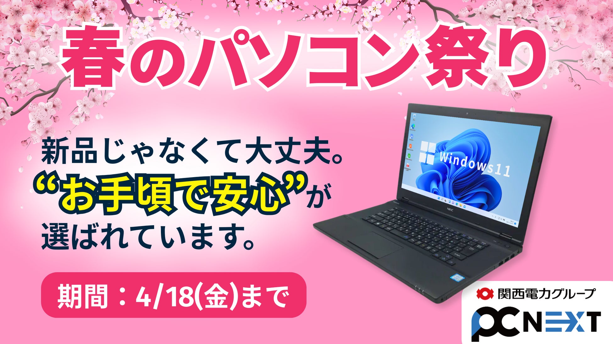 【4/11~4/18 PC next 春のパソコン祭り】今選びたい”お手頃で安心”な再生パソコンがお得な8日間!
