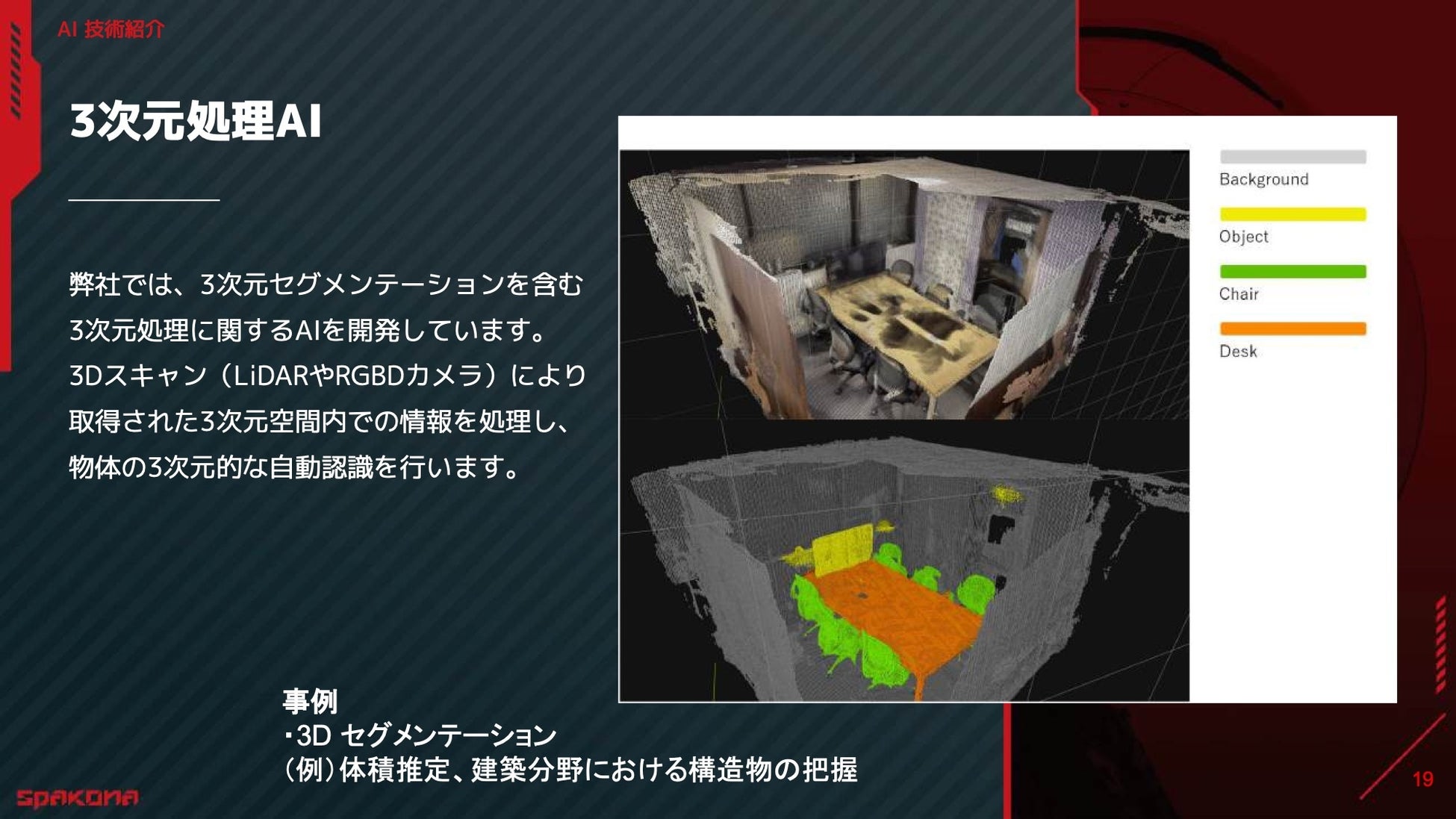 株式会社Spakonaは2020年の設立以来、「世界を最適に設計する」をミッションに掲げ、画像処理AI、3次元セグメンテーションをはじめとする3次元処理AI、生成AI、データ解析エンジン、数理最適化エンジンなど多岐にわたる最先端AI技術を独自に開発し、企画から要件定義、バックエンド・フロントエンドのシステム開発・運用まで、一貫した高度なソリューションを提供してきました。