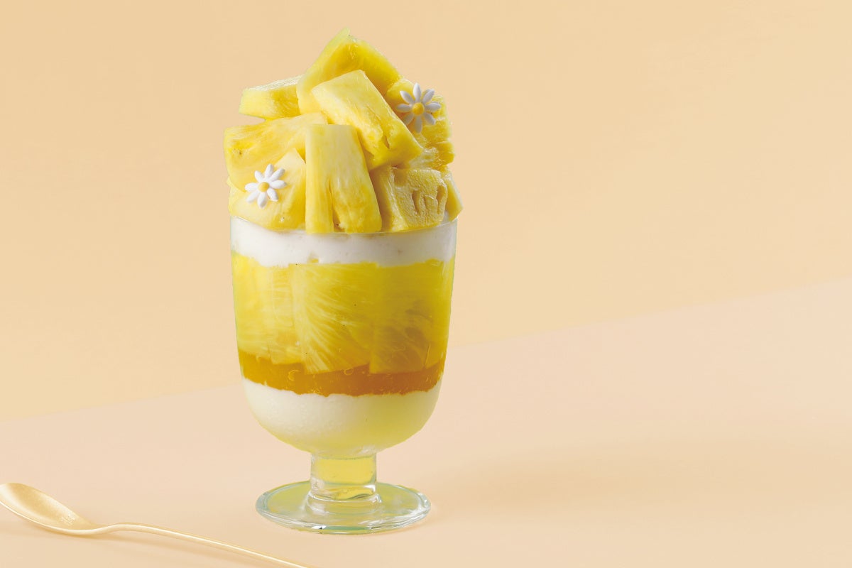 本格的な夏にも食べやすい、ジューシーでトロピカルな甘みと、爽やかな酸味が楽しめるパイナップルのパフェをご提供します。