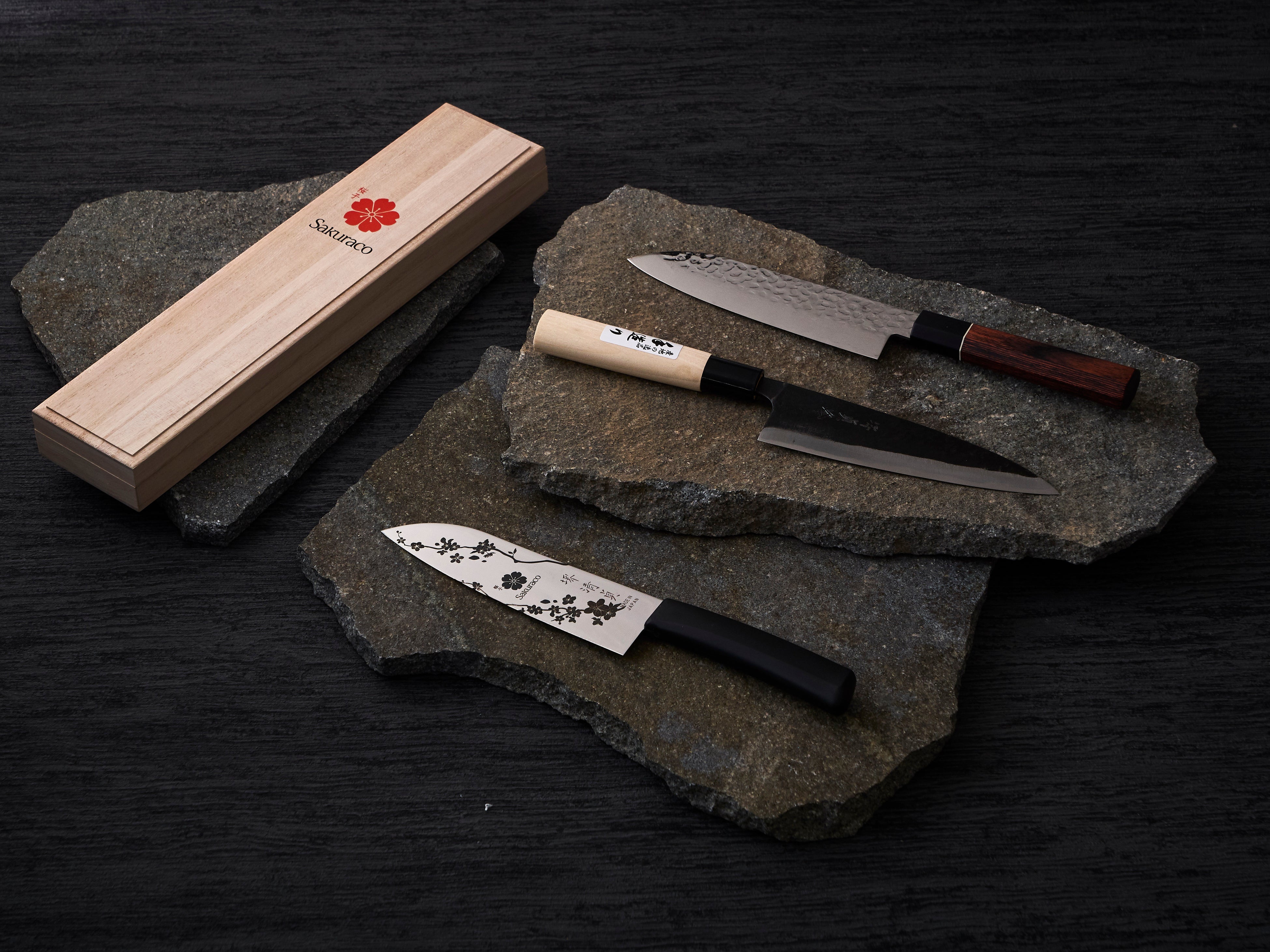 日本三大刃物産地として挙げられる、「岐阜県関市」・「大阪府堺市」にて作られており、Sakuracoブランドロゴを施した桐箱にセットしての販売という、MADE IN JAPANにこだわった一品となっております。