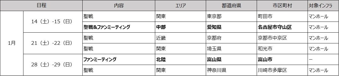 - 「マンホール聖戦」2023年1月開催スケジュール