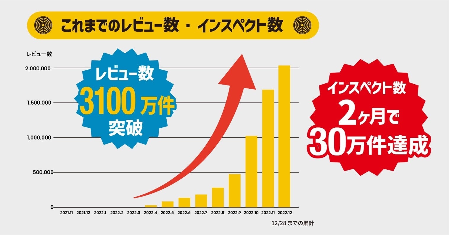 - インフラ劣化状態を判断するレビュー数は、3,100 万件を突破、インスペクト数も30万件を突破!!