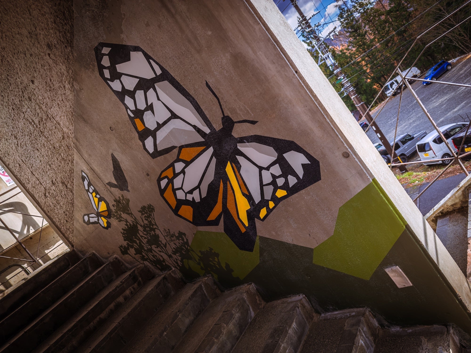 恵みの風と雨をもたらし自然災害を避ける守護神ともいわれる「雷神」や、五竜の名にちなんだ「龍」、白馬五竜でみられる花や蝶、カモシカなどの「動植物」をモチーフに、自然のもつ力強さと優しさの両面が表現されています。グラフィックアートを手がけた澁谷忠臣氏は有名ブランドとのコラボや首都圏のオフィスでの実績が多く、彼にとっても「山岳地域のスキー場」という場所にアートを施すのは初めての試みでした。