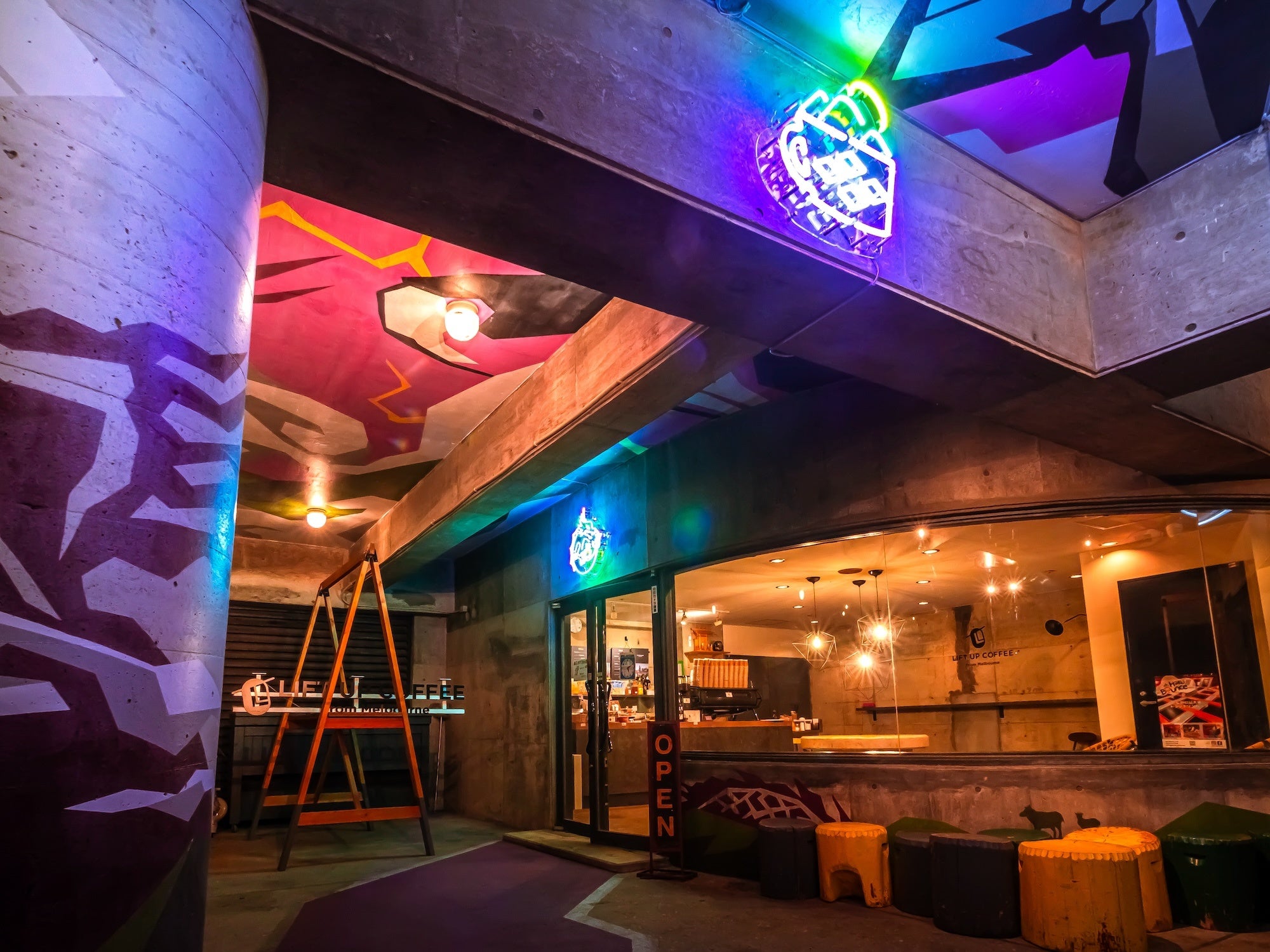 株式会社五竜(所在地:長野県北安曇郡白馬村、代表取締役社長:伊藤英喜、通称:白馬五竜)に今冬、オフィスアートのパイオニアとして知られるTokyoDex株式会社(本社:東京都世田谷区、代表:ダニエル・ハリス・ローゼン、以下「TokyoDex」)」とのコラボレーションにより、特別なアートインスタレーションが登場します。エスカルプラザ内にて冬季のみ営業するLift Up Coffeeの前のスペースが、アーティスト/イラストレーターの澁谷忠臣氏が手がけるグラフィックアートと、ネオンアーティストのはらわたちゅん子氏によるネオンサインを融合したスペシャルな空間に生まれ変わりました。