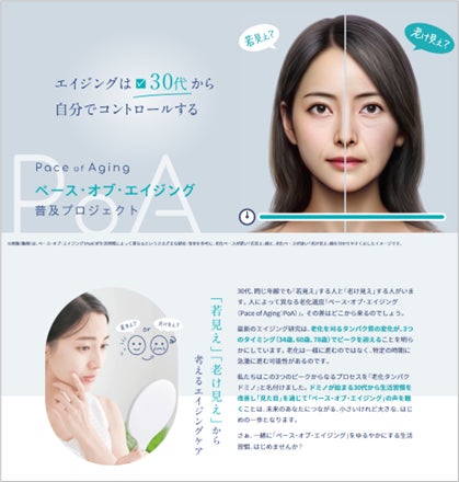 「ペース・オブ・エイジング(PoA)普及プロジェクト」 のサイトを通じて、PoAが 「見た目」 や美容・健康に与える影響について理解を深めていただき、30代からのエイジングケアを考えるひとつのきっかけにして頂ければと思います。