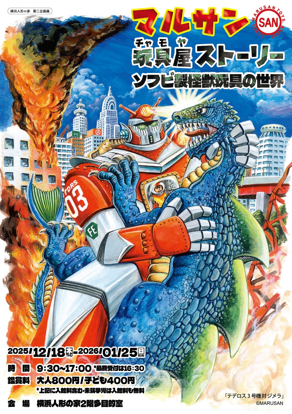 本展ではマルサンの玩具屋物語をメインに、昭和テイストで造形されたマルサンオリジナルのソフビ怪獣をはじめマルサン製ヴィンテージ玩具なども展示します。この機会に深淵なソフビの世界を少しだけ覗いてみてはいかがでしょうか。