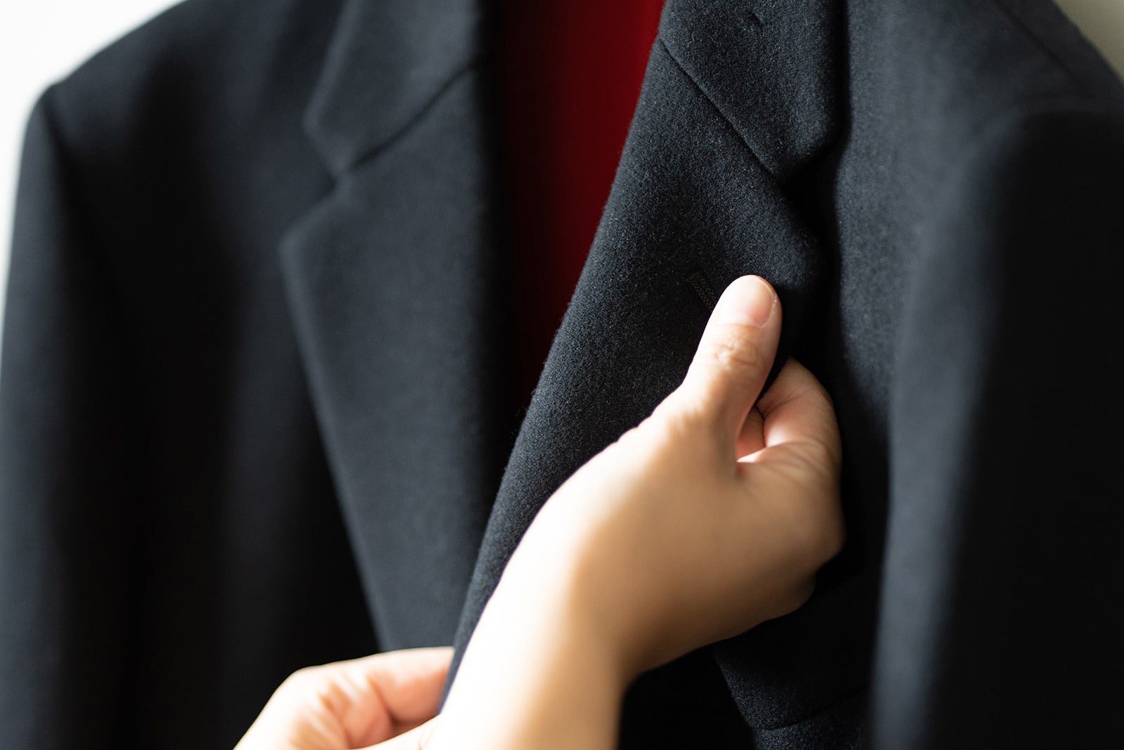 また、コートとしての仕立ても本格的。胸のハリを美しく見せてくれる「胸増し芯」を内側に入れて縫製したり、袖先のボタンも開閉ができる「本切羽」を採用するなど、テーラードジャケットと同じクラスの仕様でお作りしています。