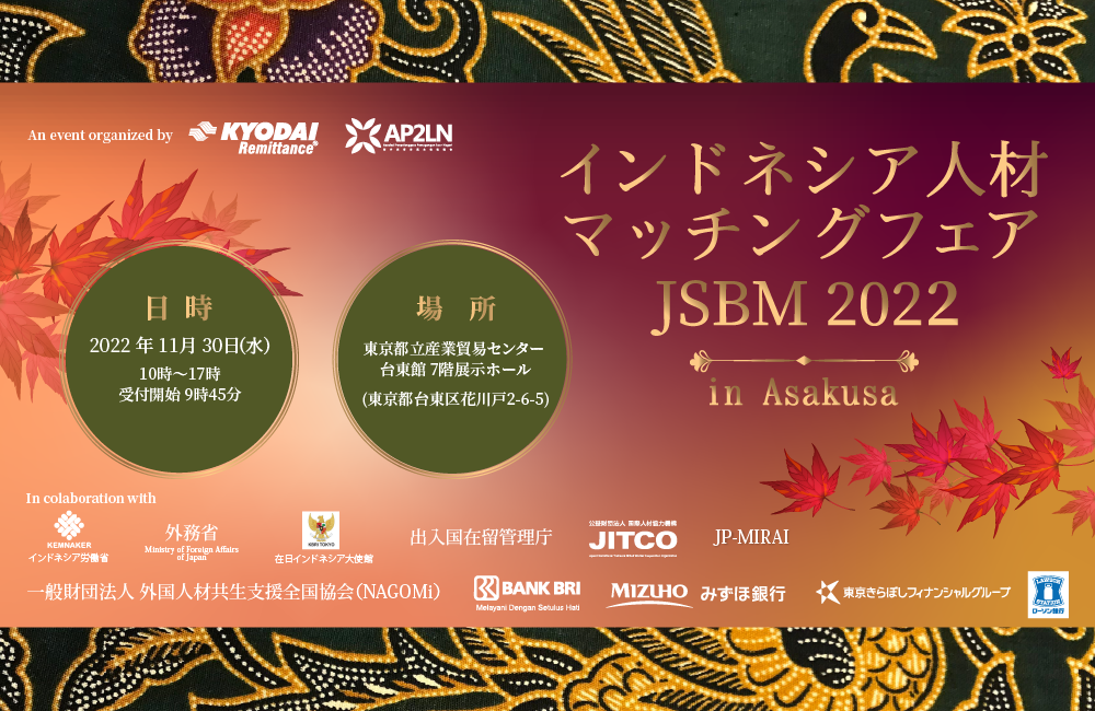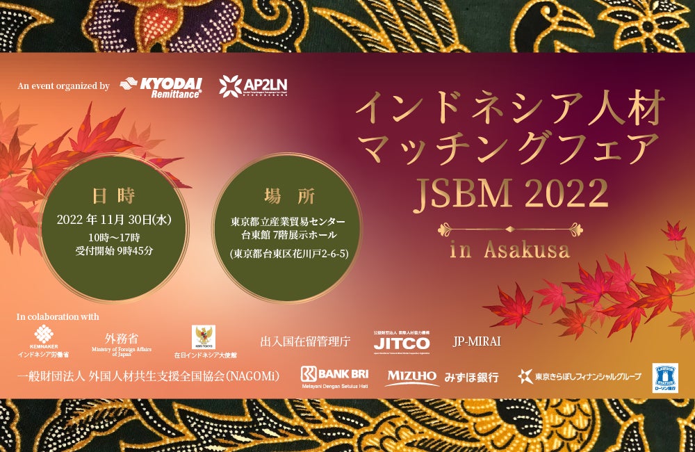 【協賛・協力】:在日インドネシア大使館 、BRI、JITCO(公益財団法人 国際人材協力機構)、みずほ銀行、東京きらぼしフィナンシャルグループ、ローソン銀行