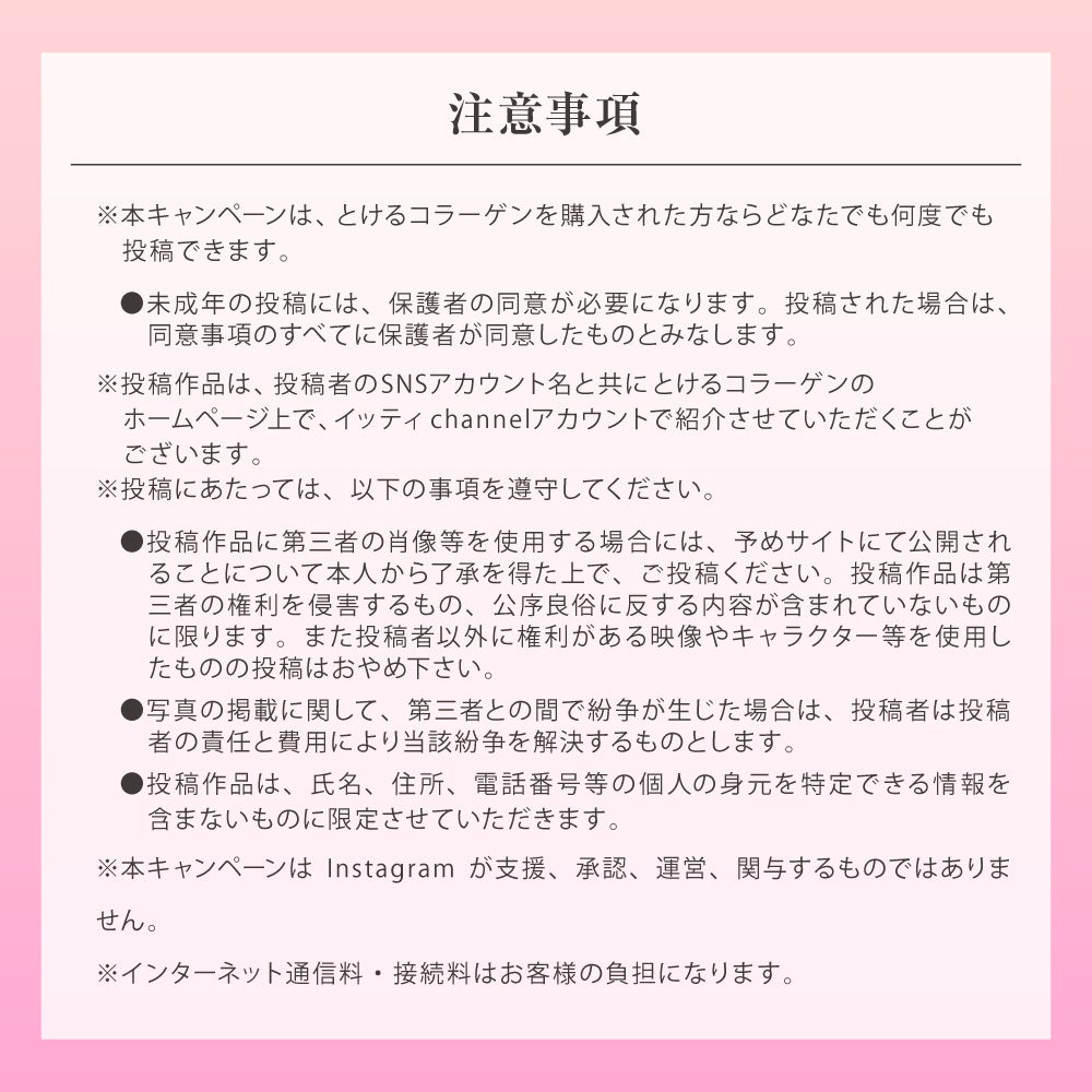 ④ハッシュタグ「#とけるコラーゲン」「#ぷるぷる美肌チャレンジ」「#韓国スキンケア」「#フェイスマスク」「#韓国コスメ」「#コラーゲン」「#アンチエイジング」を記載し、イッティchannel l(@itty_channel_)をタグ付けして投稿