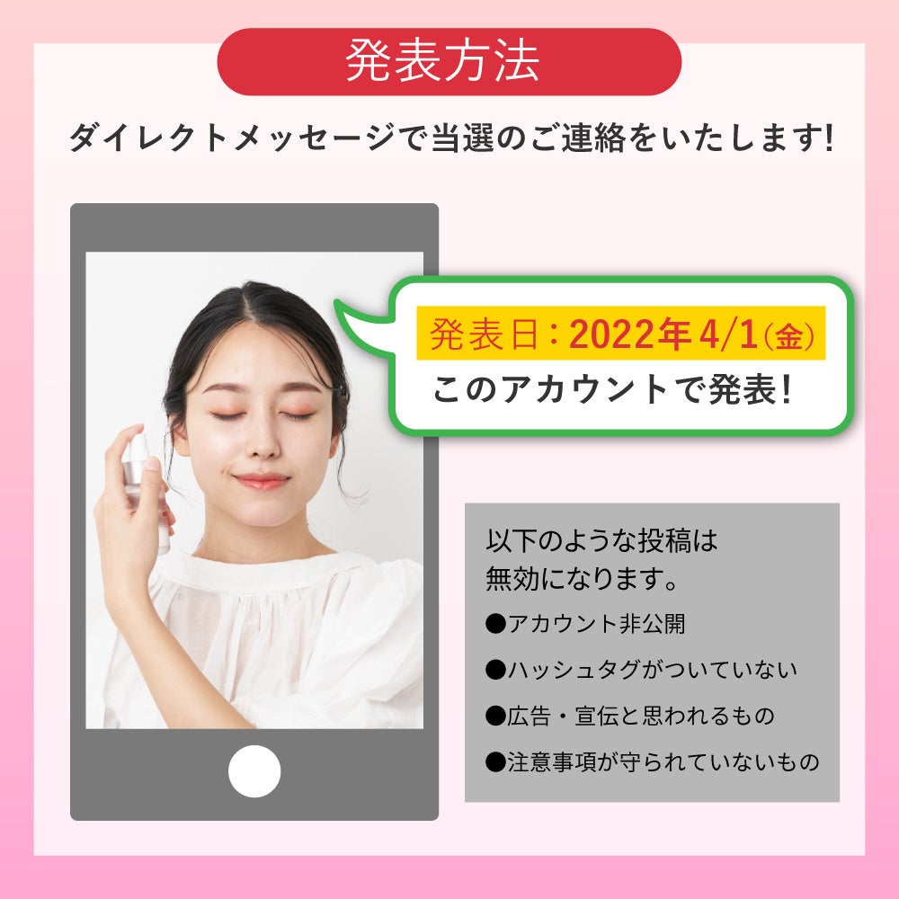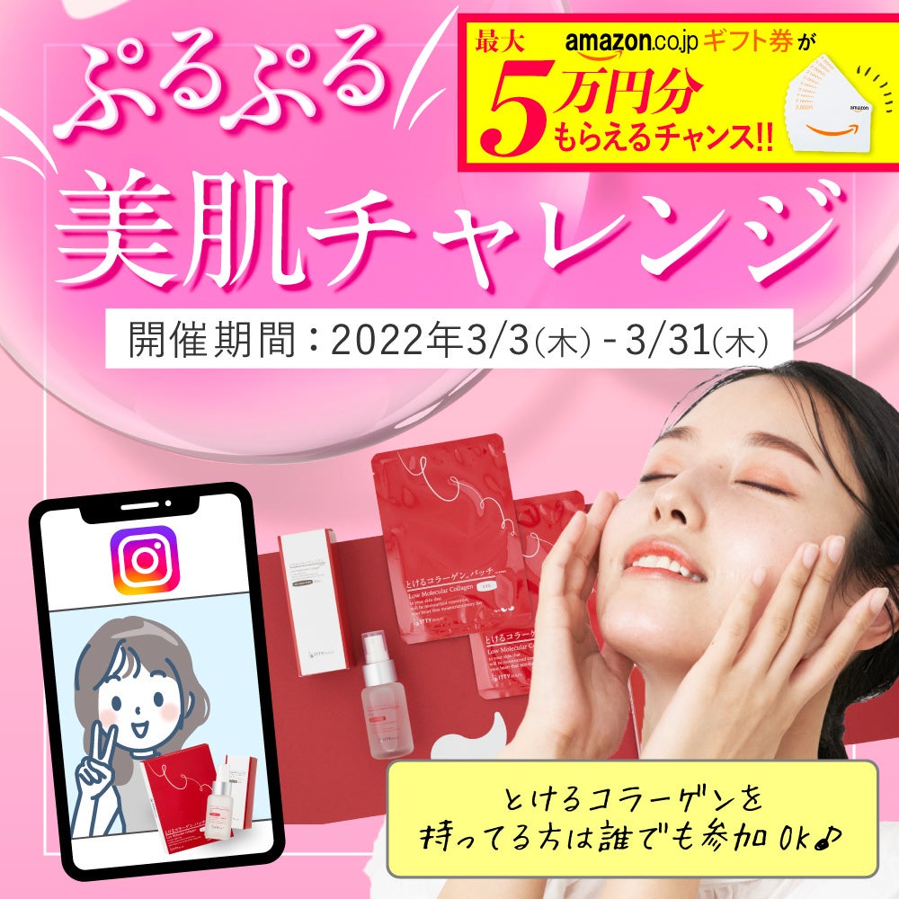 本製品を使用した動画や写真を撮り、Instagramで指定のハッシュタグをつけて投稿するだけで簡単にご応募いただけます。また、ご投稿いただいた方の中からグランプリを選ばせていただきます。当選された方は、Amazonギフト券ととけるコラーゲン(※)パッチ&ミストをプレゼントいたします。本キャンペーンは参加者全員特典でとけるコラーゲンパッチ(※)&ミストが半額で購入できますので、たくさんのご応募お待ちしております。