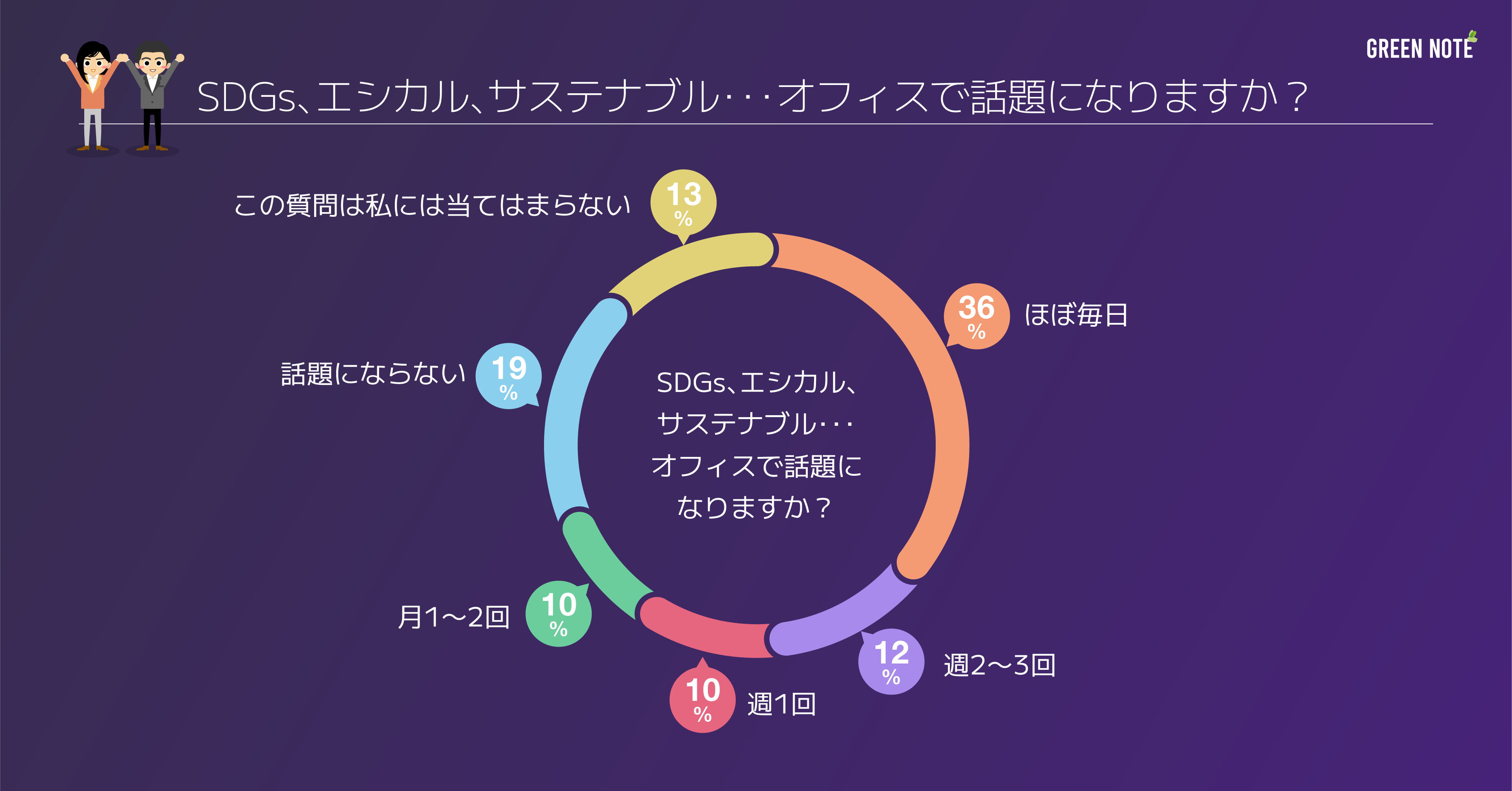 市場調査の結果、約6割が職場で日常的にSDGs関連の話題が上がっている事が分かった結果となりました。