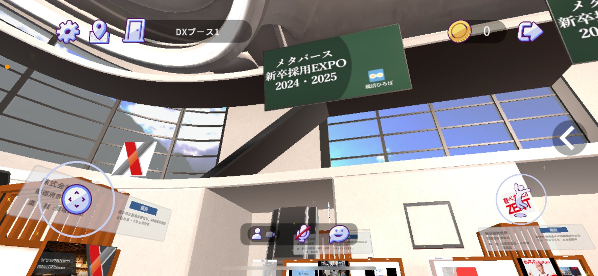 利用者は専用のアバターを使ってメタバース(仮想空間)内を自由に歩き回り、空間内に用意されたブースなどで情報を収集。説明会への参加や、担当者とチャット会話ができます。