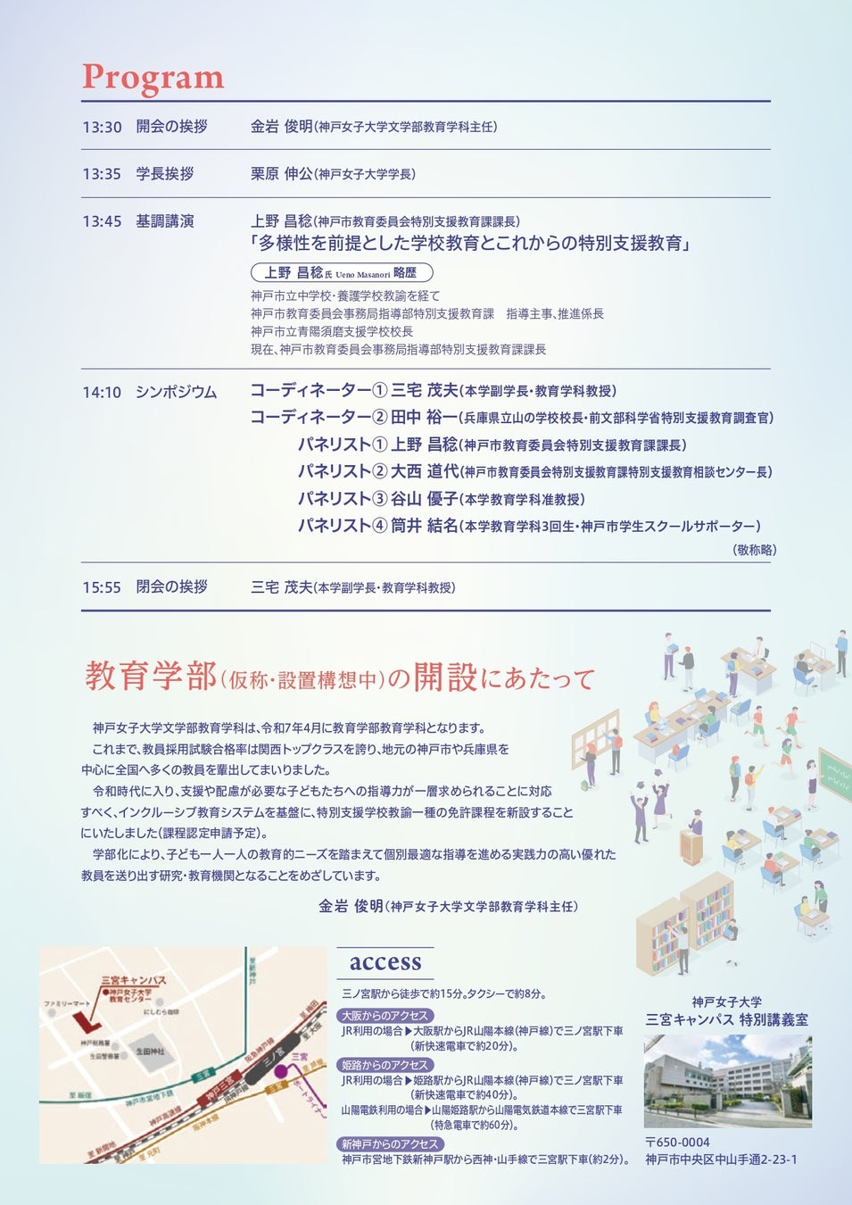 教育学部 開設記念シンポジウムのご案内(神戸女子大学)