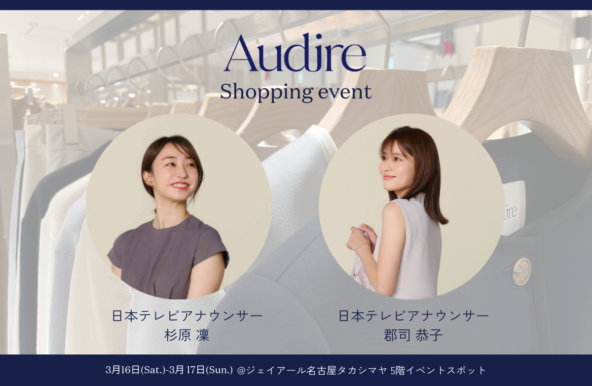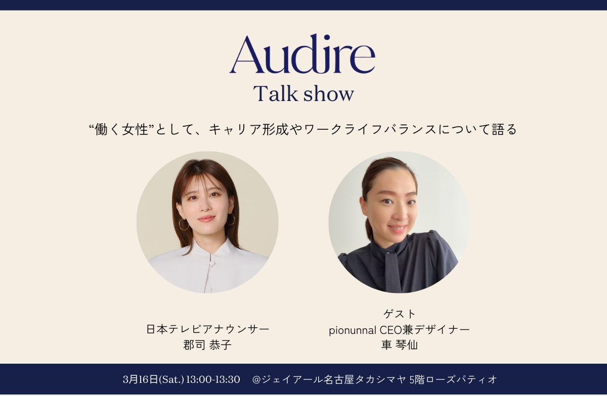 日本テレビアナウンサーの声から生まれたブランド Audire(アウディーレ)は、3月13日(水)〜3月19日(火)に、ジェイアール名古屋タカシマヤ 5階イベントスポットにてPOPUP STOREを開催いたします。