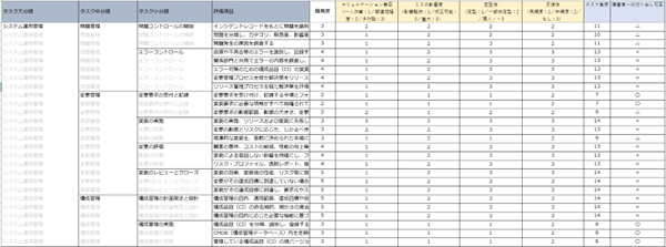 主に精神障害者に適したタスクを判定するために、既存タスクを「難易度」「コミュニケーション要否」「ミスの影響度」「定型性」「反復性」の5つの観点で評価して、客観的な職務設計と配置判断を支援する「精神障害者タスク評価シート」を用意しました。