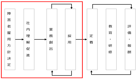 ②障害者雇用に必要なタスクや知識を明確化でき、採用から定着まで一貫した活動を計画的に進められます。