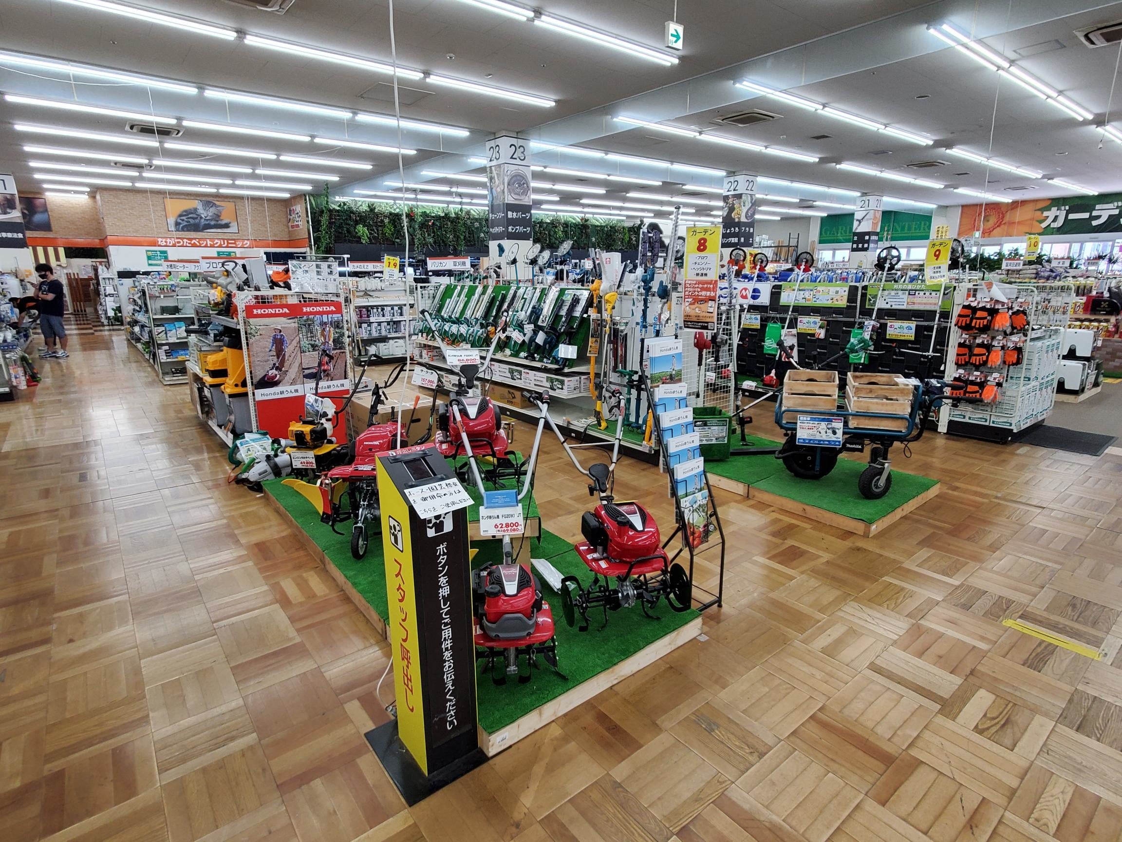 園芸及び農業機械においては一般向けの芝刈り機、バリカン、ヘッジトリマー等の品ぞろえを増やすとともに高圧洗浄機を同コーナーに展開、庭廻りのお手入れを提案します。