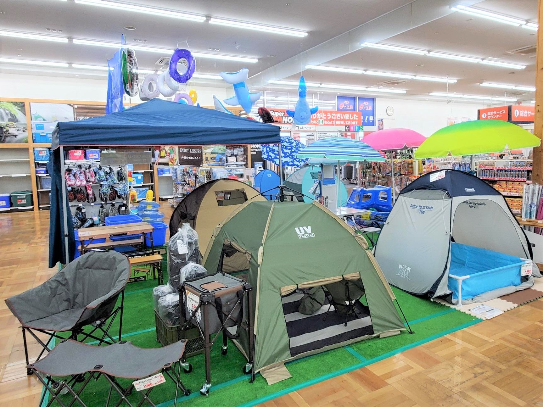 タープ、テーブル、チェア、ランタン、コンロ、クーラーボックス等のキャンプ・バーベキュー用品を約1,300点をラインアップ。ビニールプールや浮き輪等、夏のレジャー用品も充実しています。