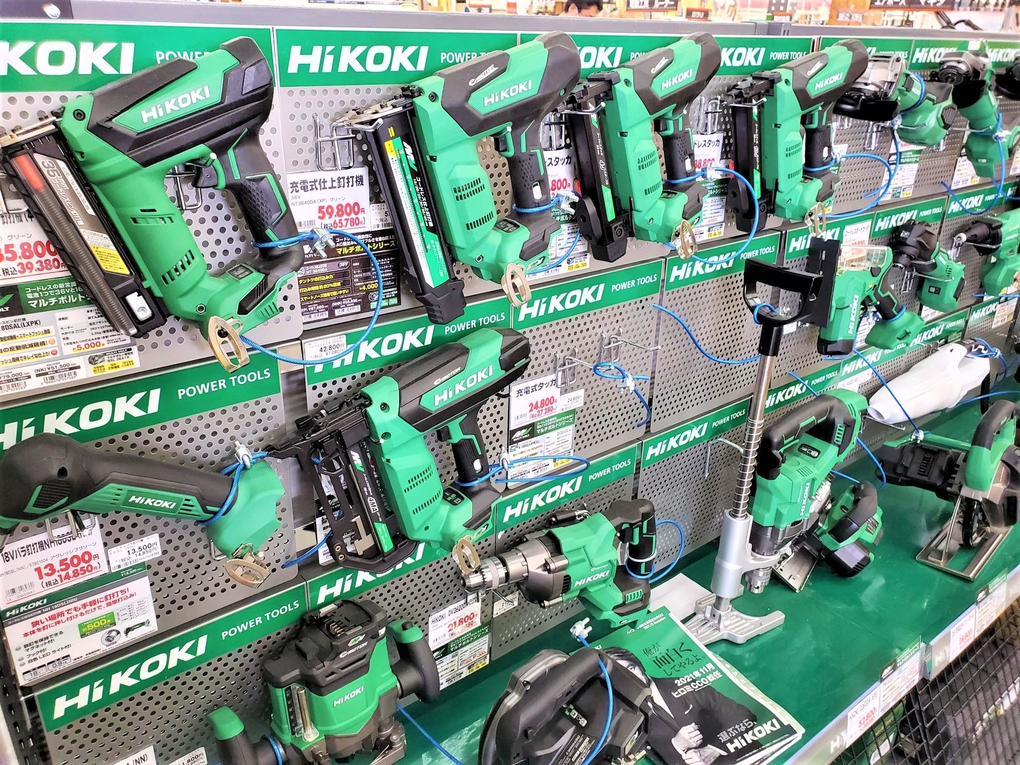 工具コーナーでは、プロ御用達HiKOKIの電動工具を新規導入。充電式電動工具を中心に約150点をラインアップしました。