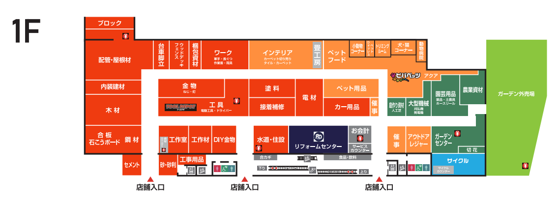 事業内容:カー用品、大工資材用品、園芸用品、ペットおよびペット用品、家庭日用品、インテリア用品、