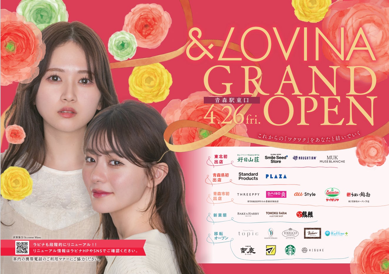 株式会社JR東日本青森商業開発(本社:青森県青森市柳川一丁目2番3号、代表取締役社長:紺野洋紀)が運営するJR青森駅東口ビル&LOVINAは、2024年4月26日(金)AM11:00に開業いたします。グランドオープンに伴い、各種オープニングキャンペーンを行います。